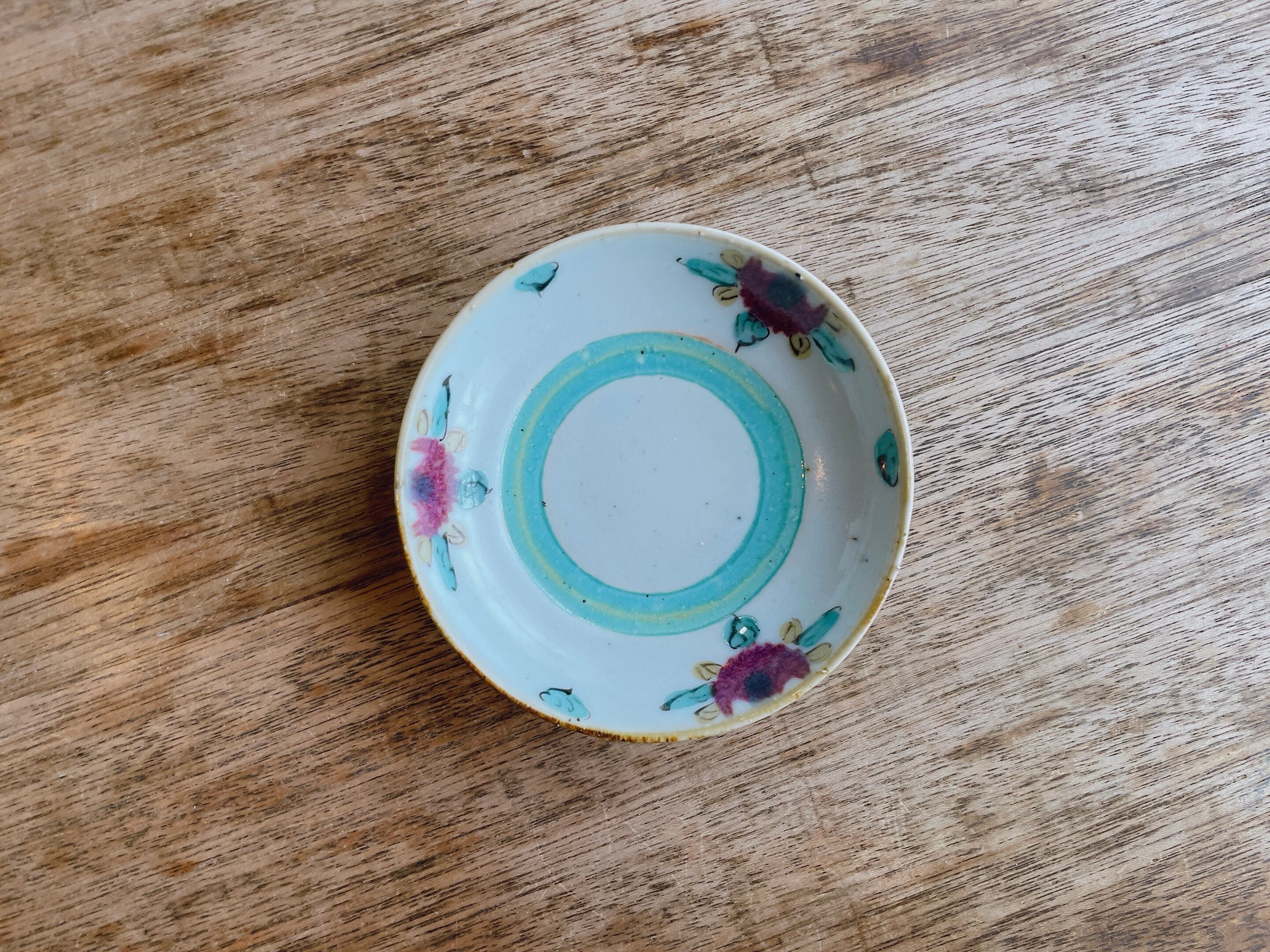 砥部焼/中田窯/4寸丸皿(釉裏紅加彩/緑)⑧
