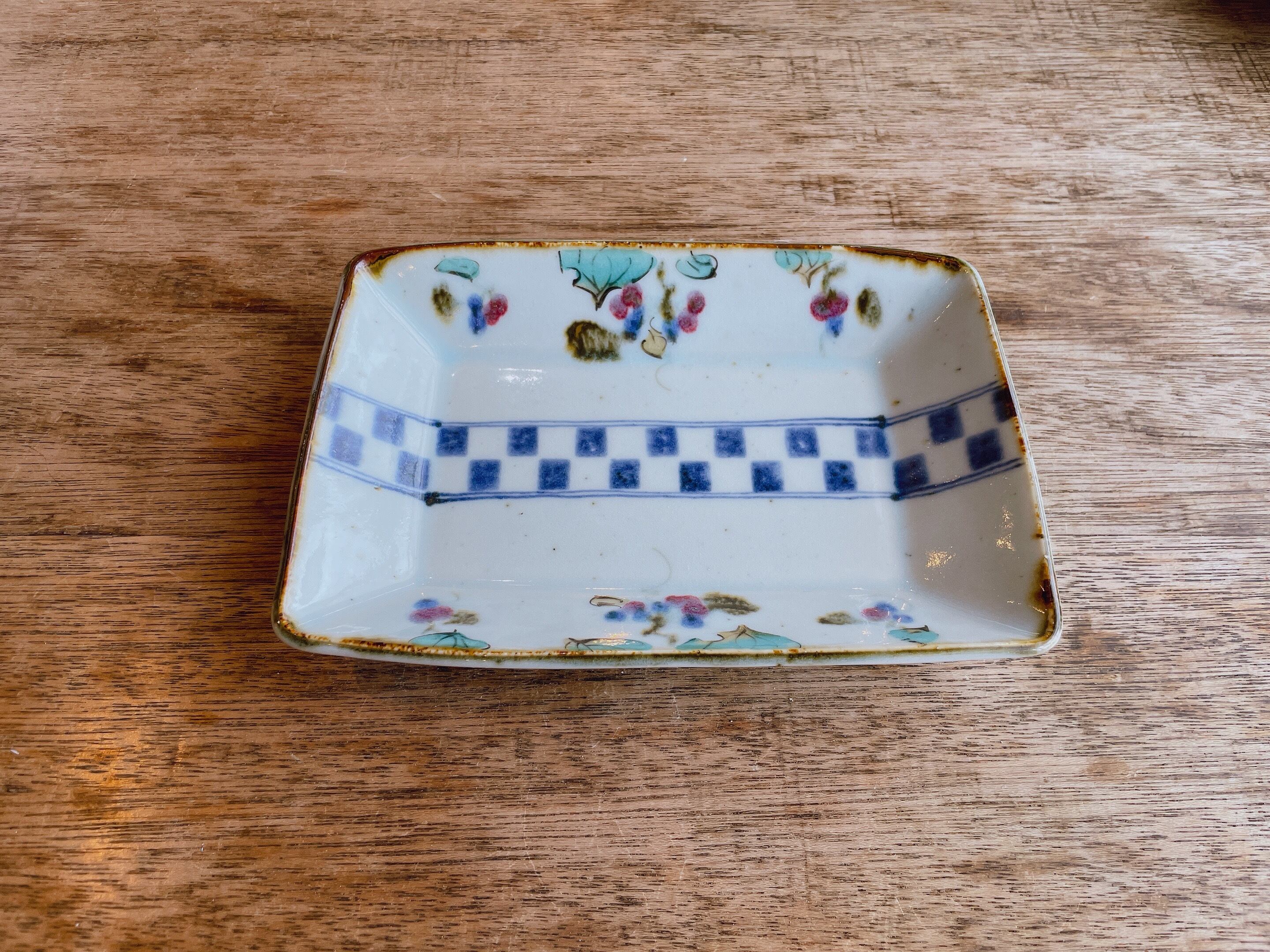 砥部焼/中田窯/7寸角皿(市松×山帰来)②