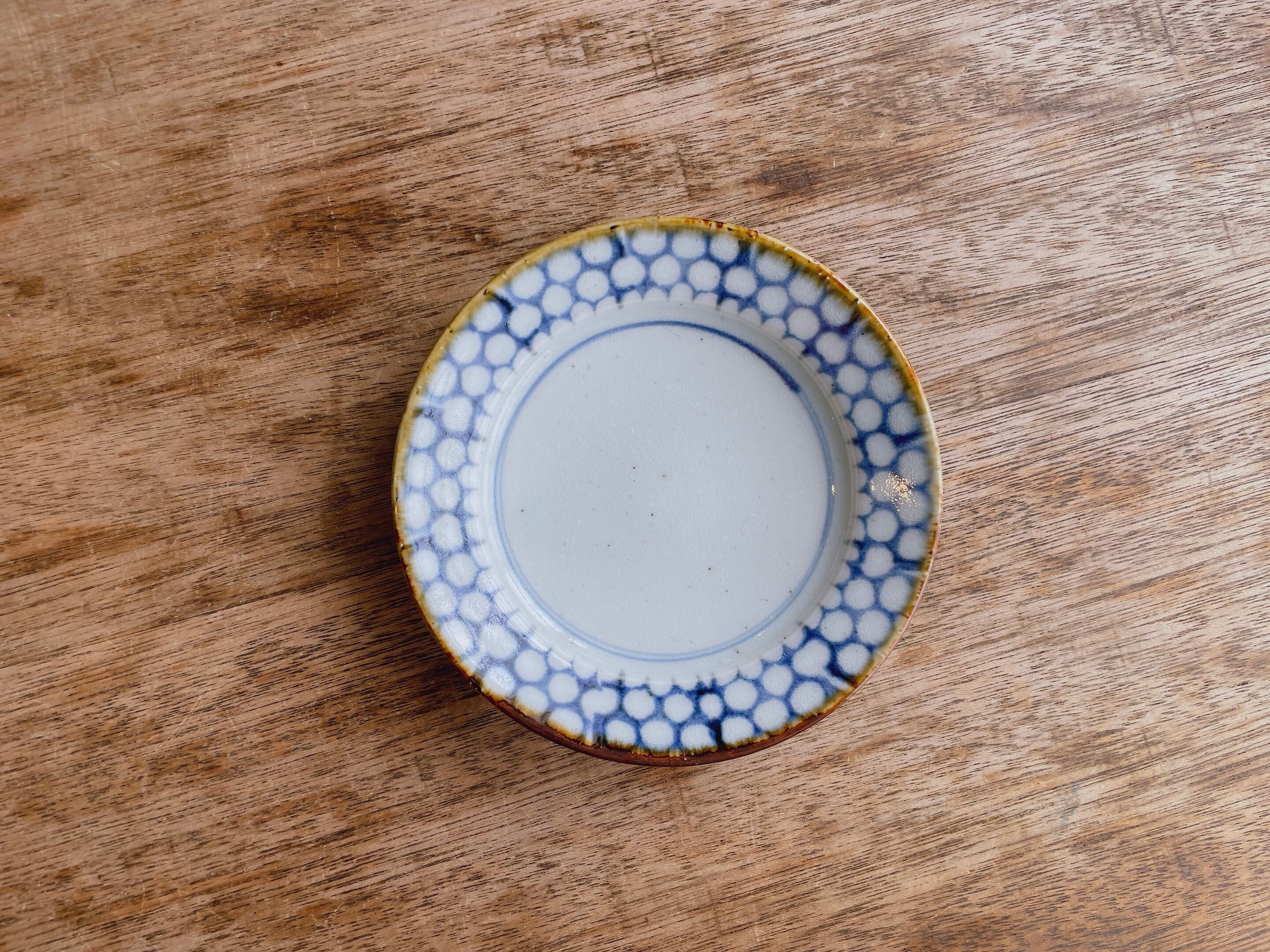 砥部焼/中田窯/5寸リム皿(印判水玉)③