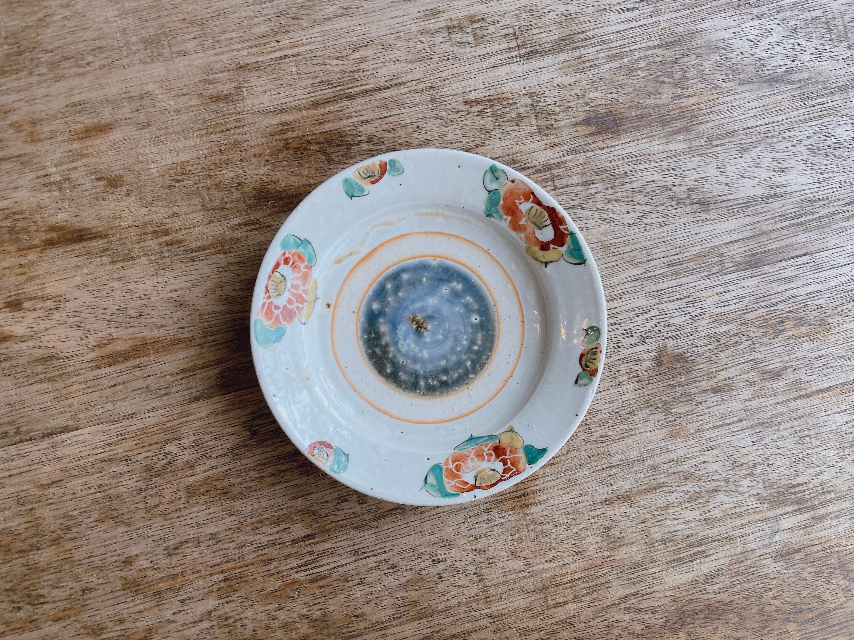 砥部焼/中田窯/5寸リム皿(灰釉加彩/椿)③