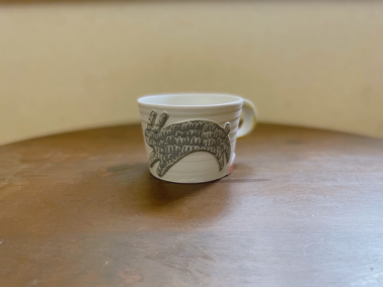 砥部焼/atelier chie/手付きカップ(うさぎグレー①)