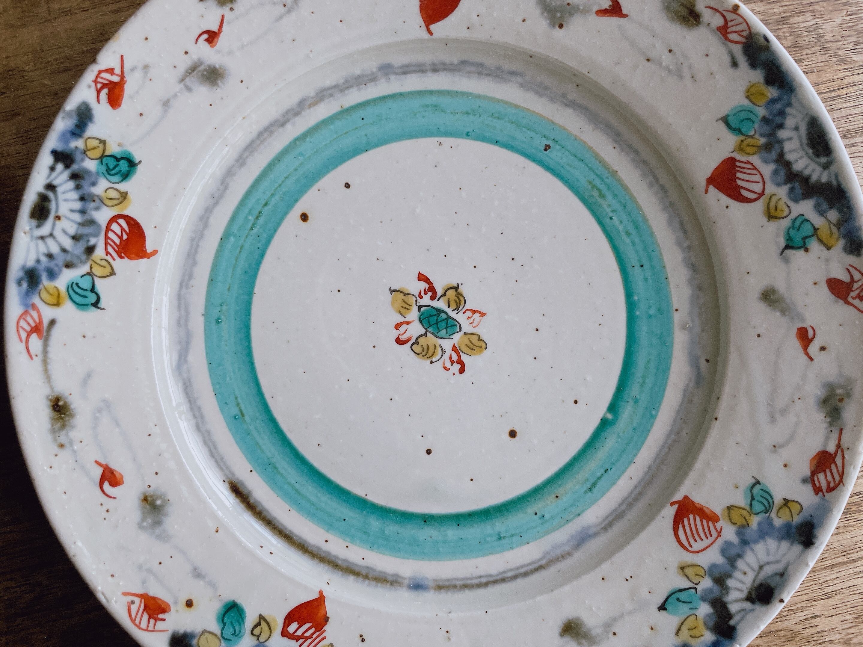 砥部焼/中田窯/8寸リム皿(灰釉加彩)①
