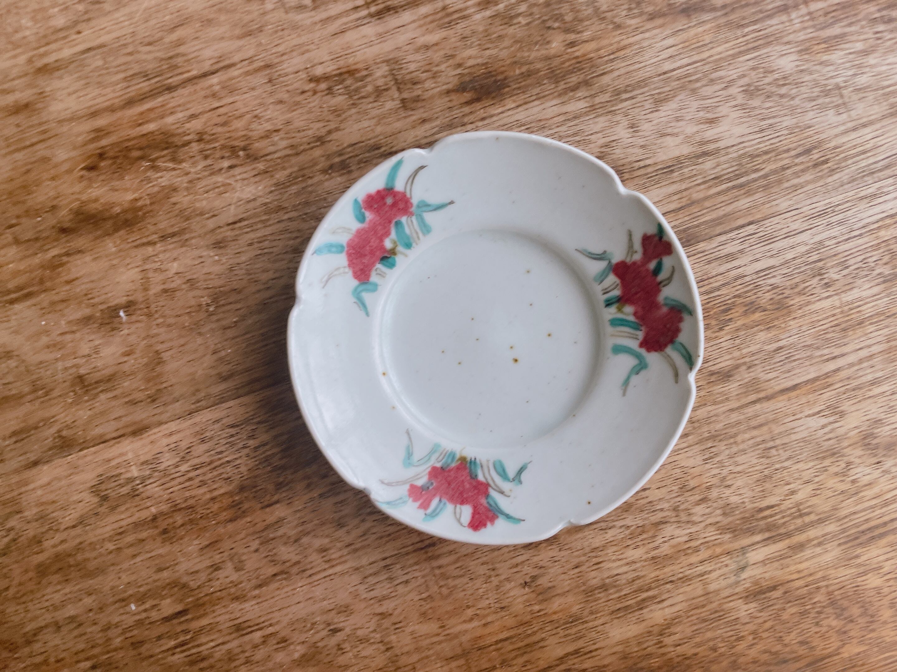 砥部焼/中田窯/5寸輪花皿(釉裏紅加彩)④
