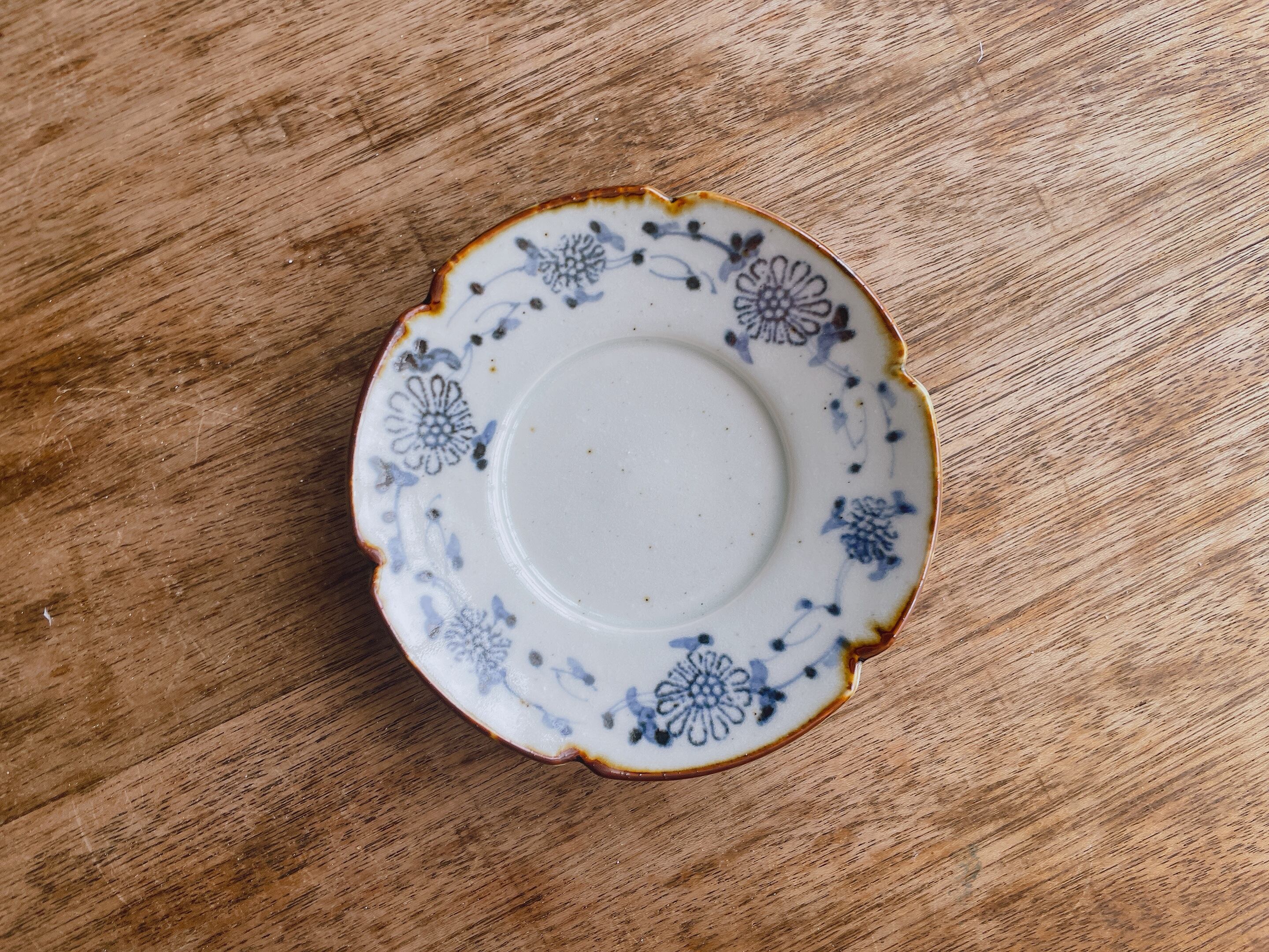 砥部焼/中田窯/5寸輪花皿(印判菊)⑫