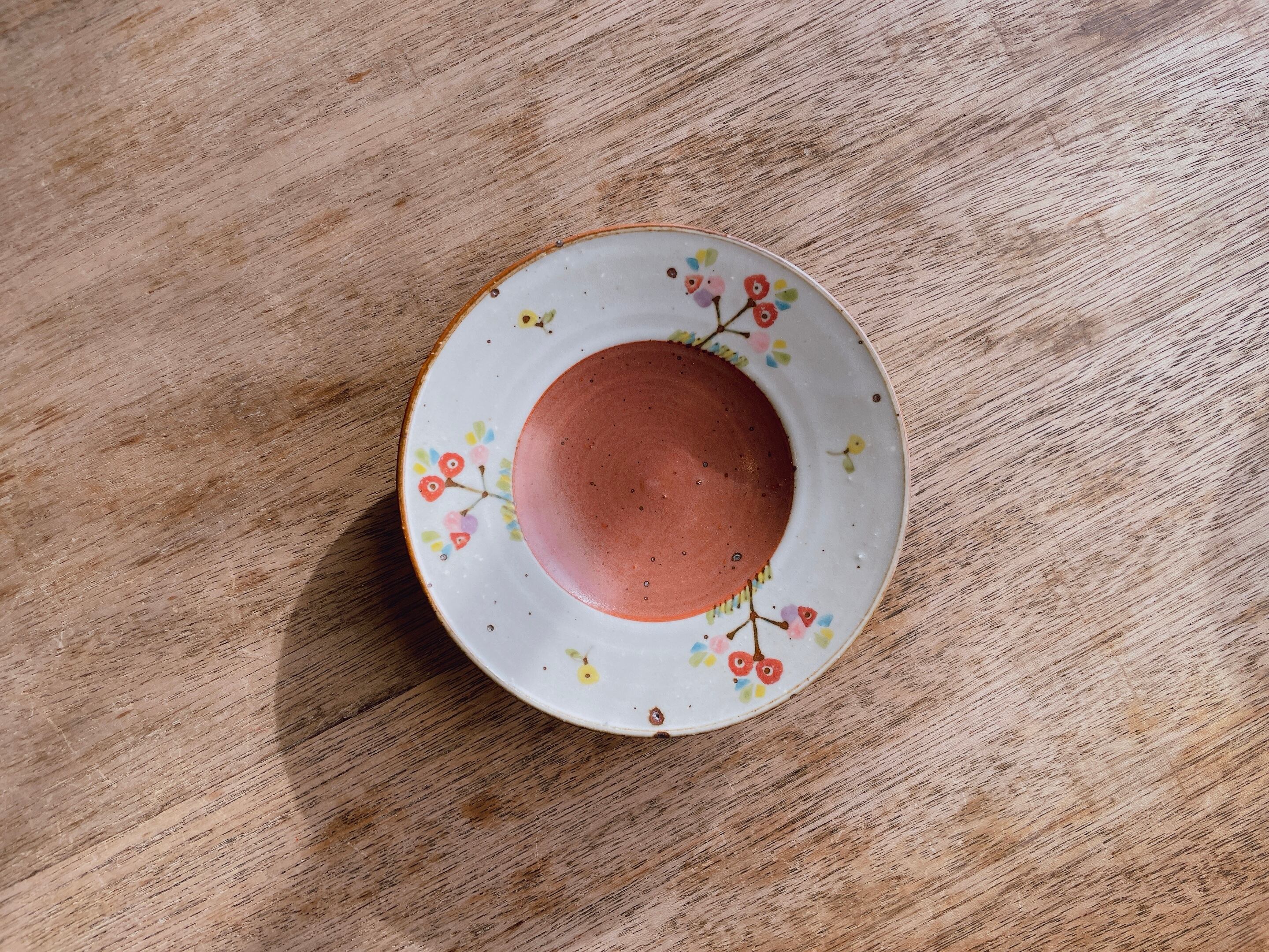 砥部焼/皐月窯/赤砥/4.5寸縁付皿(花/ピンク)②