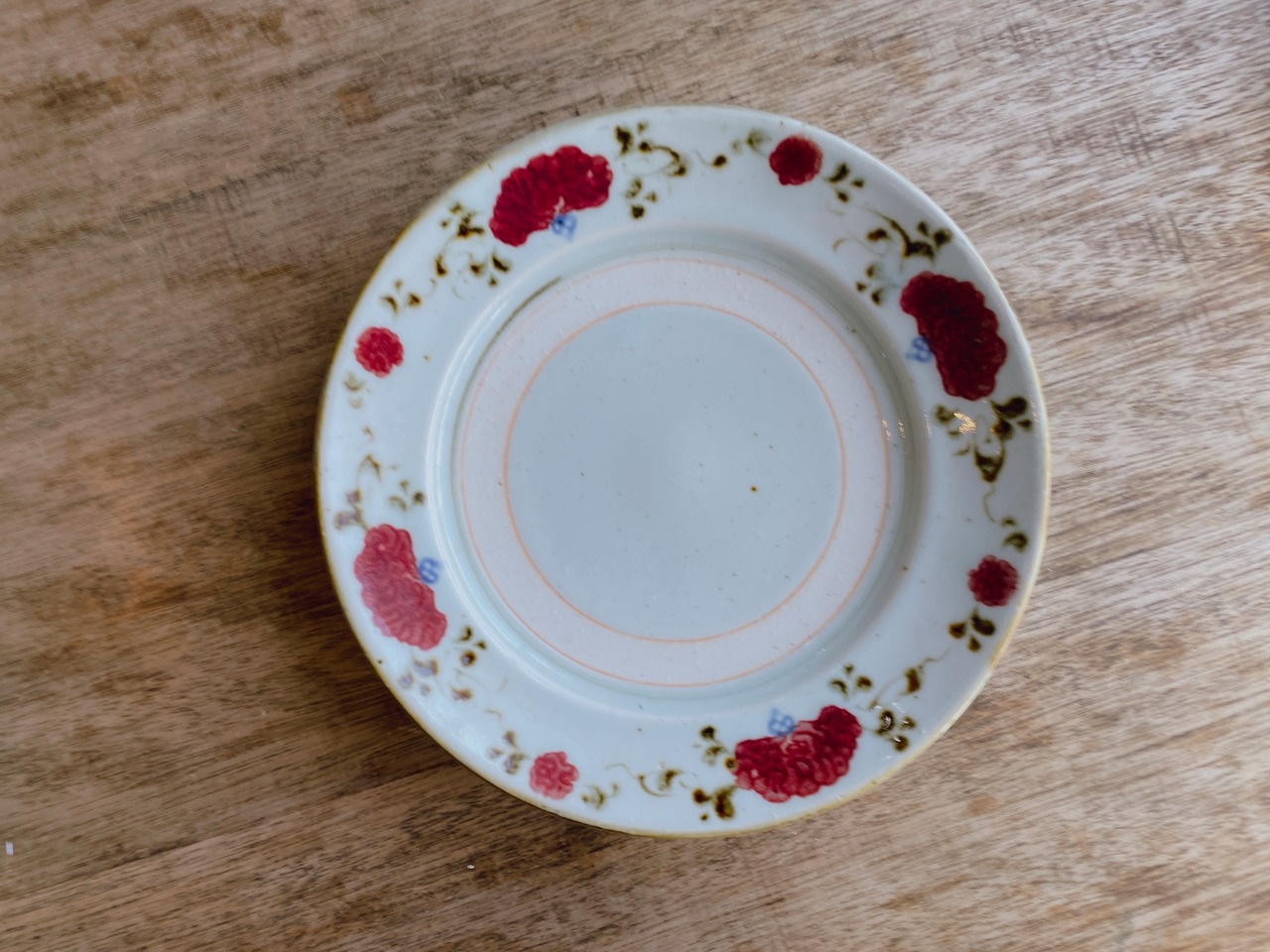 砥部焼/中田窯/8寸リム皿(釉裏紅/鶏頭)鉄唐草③