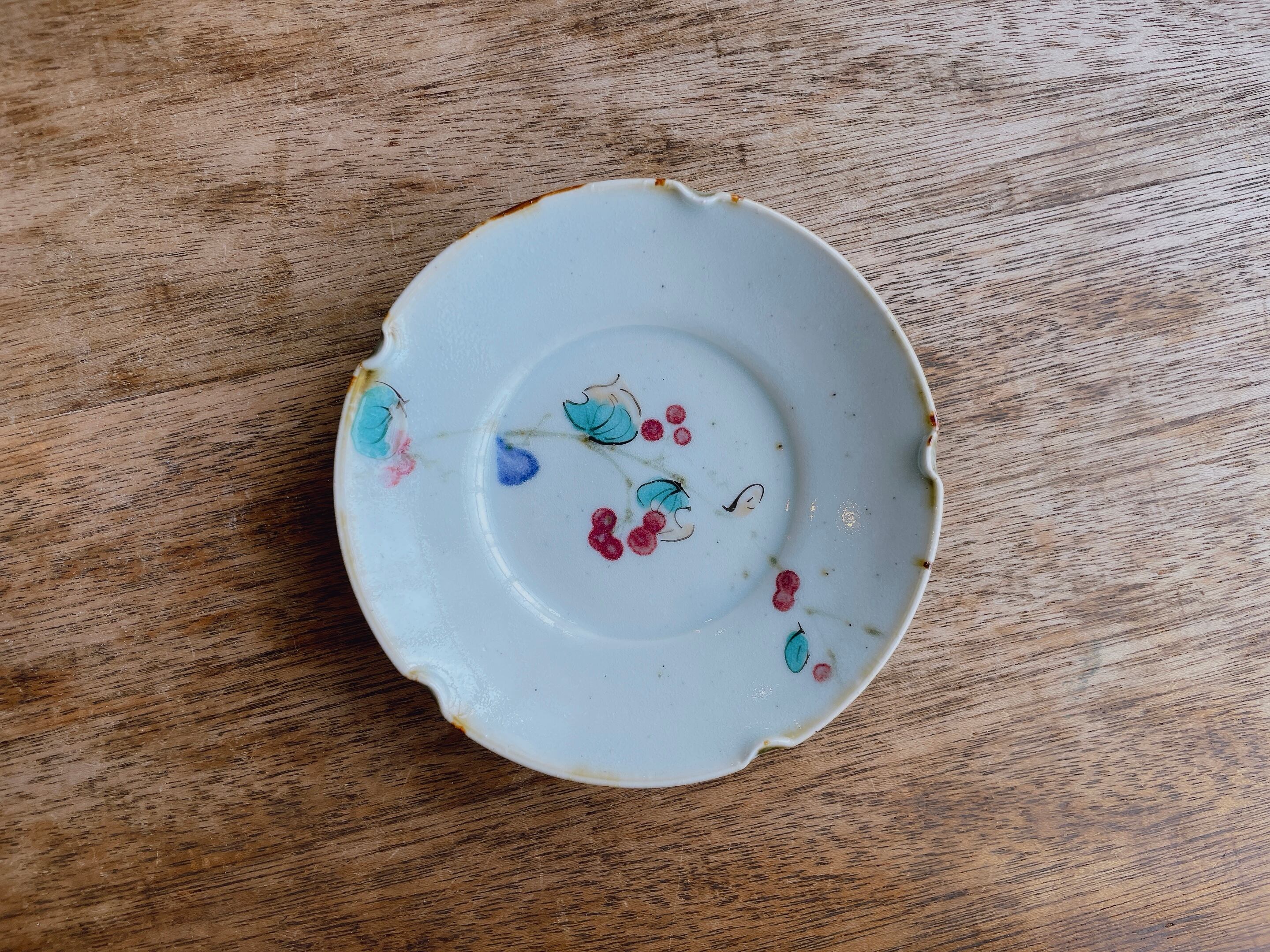 砥部焼/中田窯/5寸輪花皿(釉裏紅/山帰来)⑤