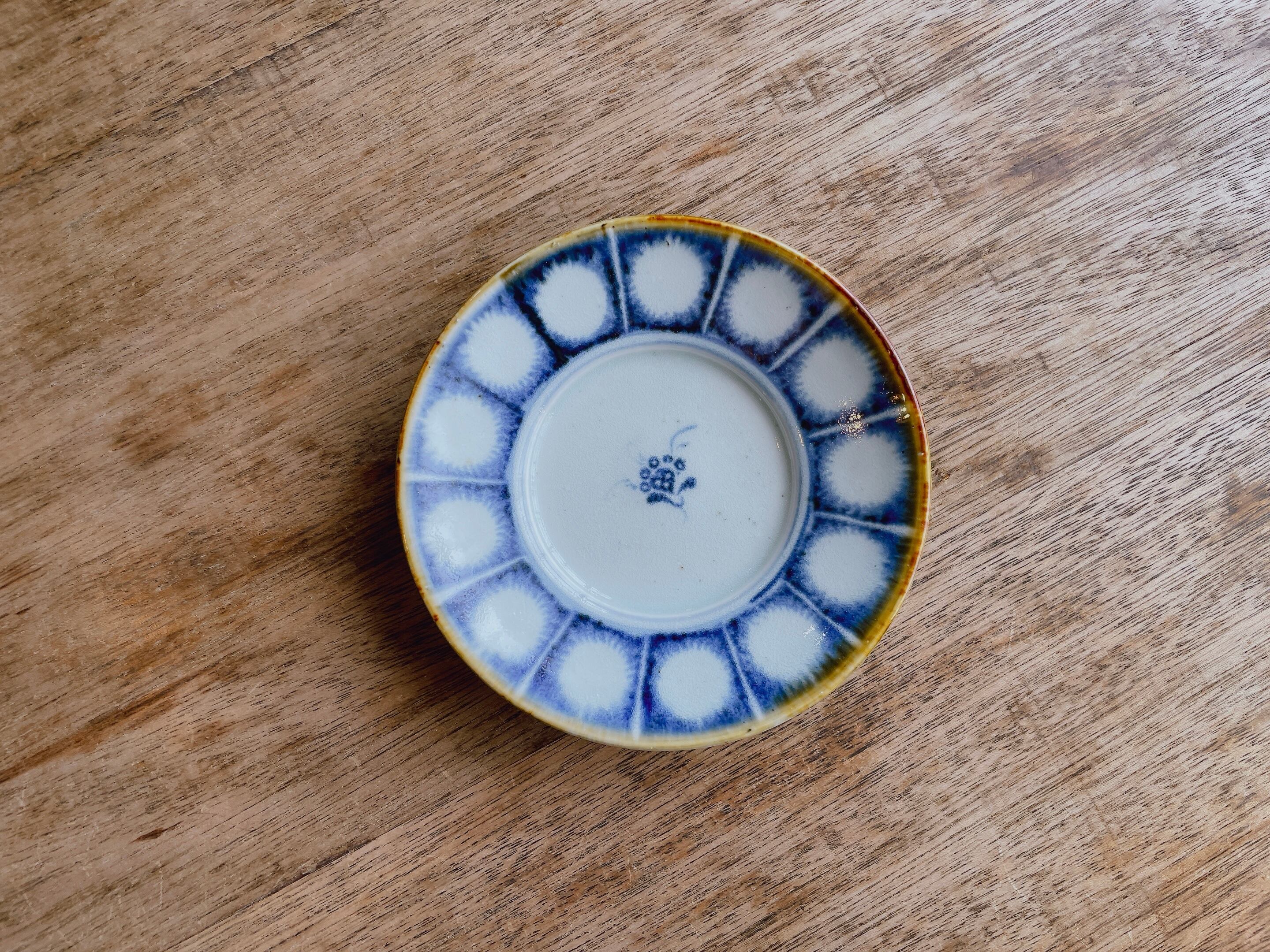 砥部焼/中田窯/5寸リム広皿(呉須/雪輪文)①