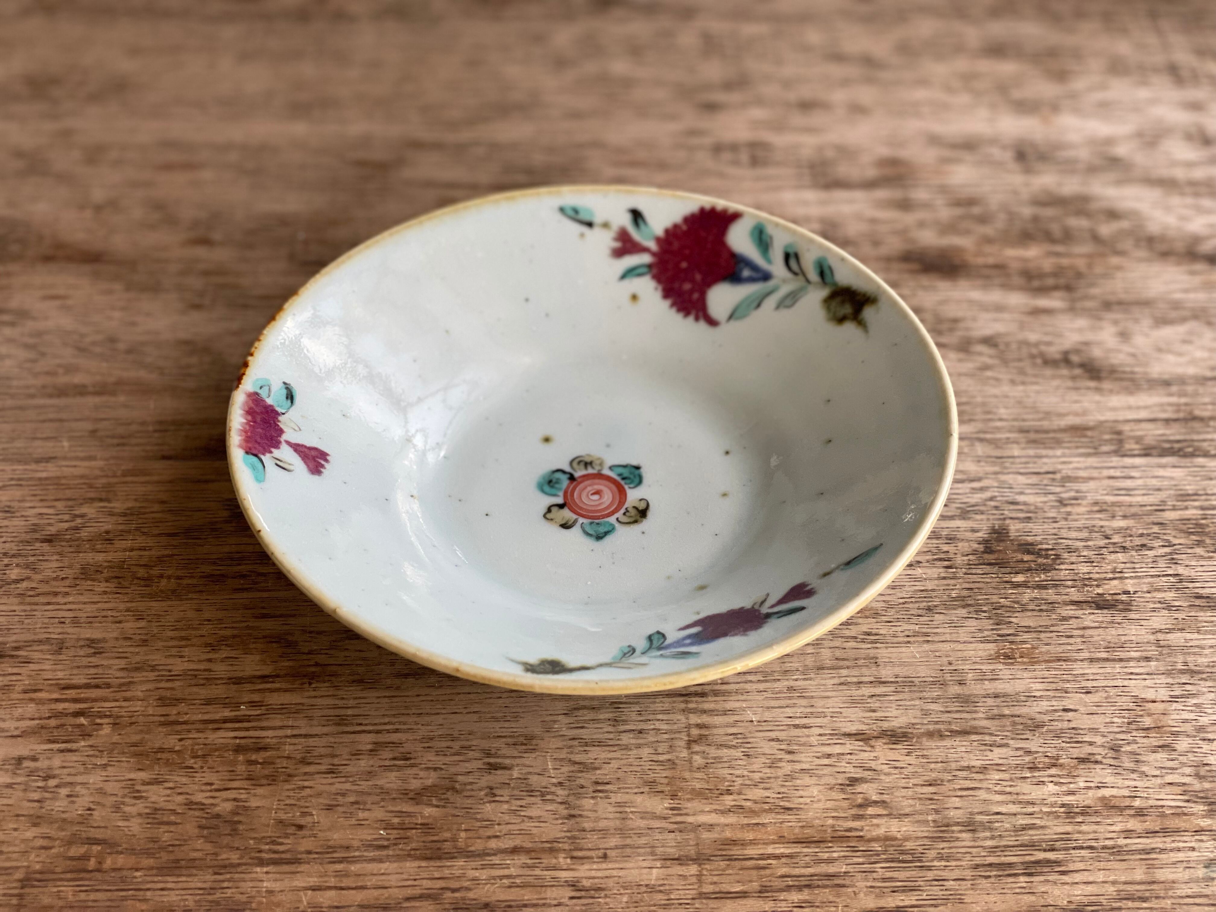 砥部焼/中田窯/6寸浅鉢(釉裏紅加彩/鶏頭)①