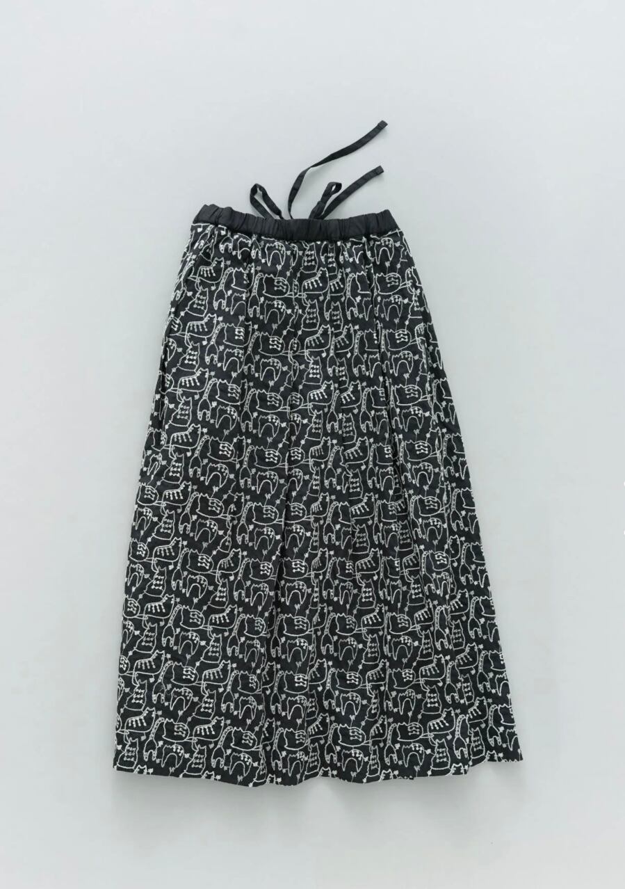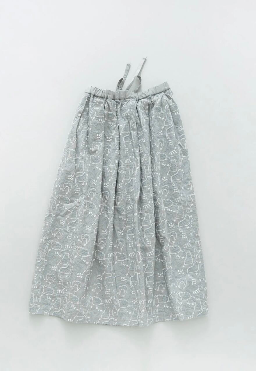ネコが寛ぐ様子を刺繍で描いたタックスカート。
