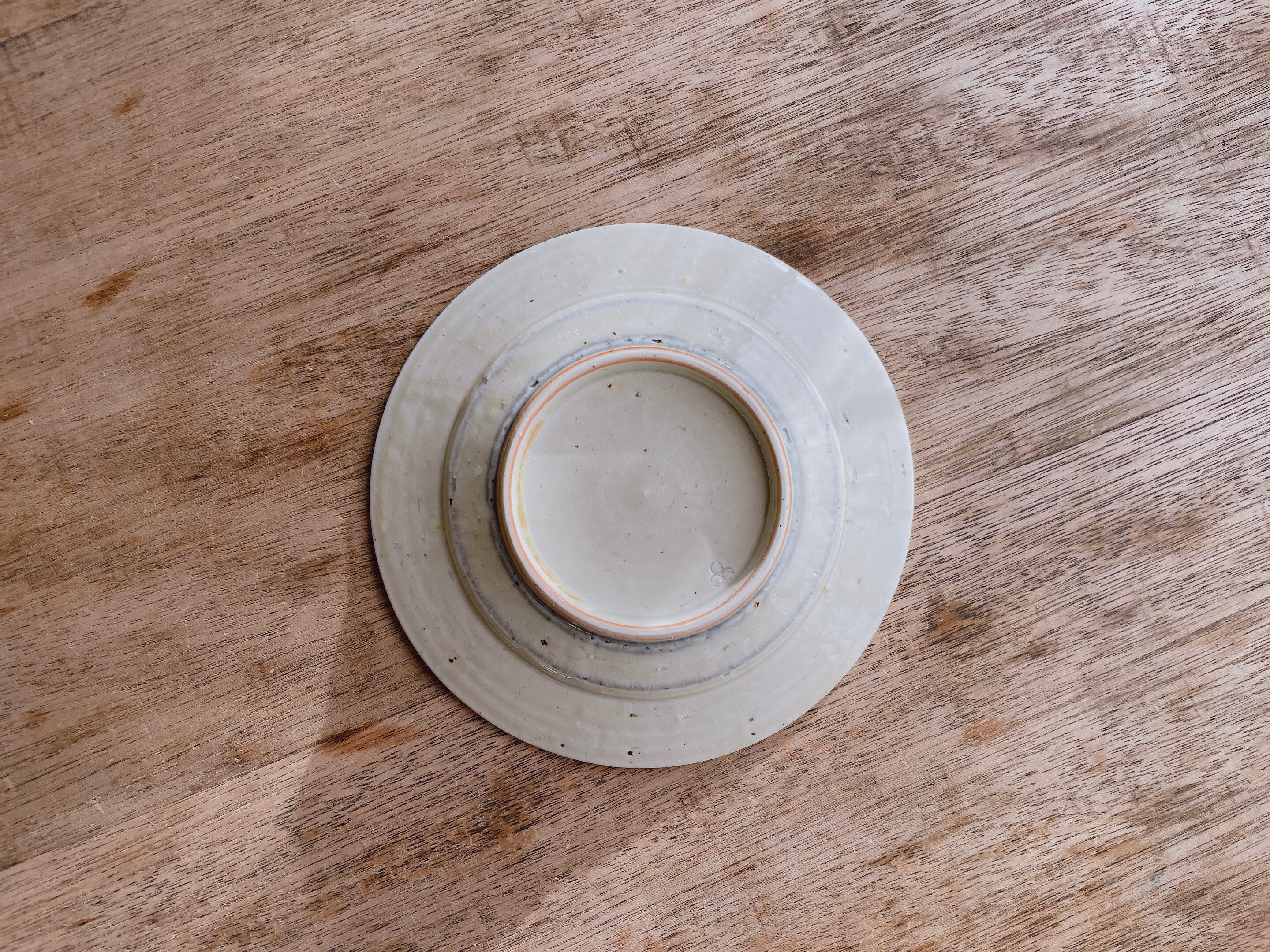 砥部焼/中田窯/5寸リム皿(灰釉加彩)D