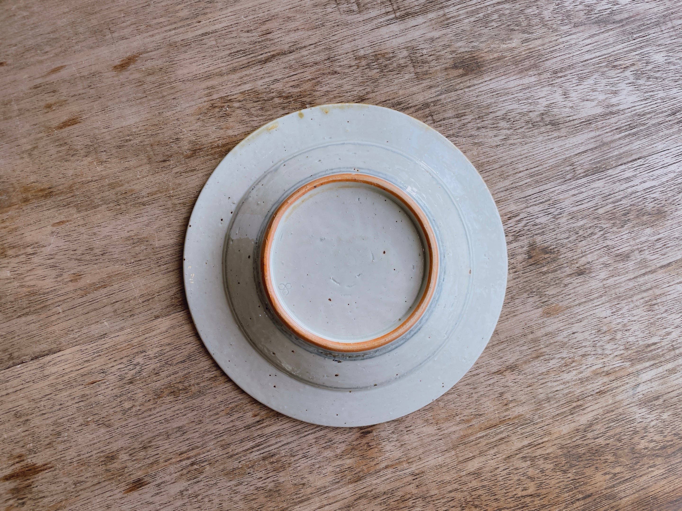 砥部焼/中田窯/6寸リム皿(灰釉加彩)⑧