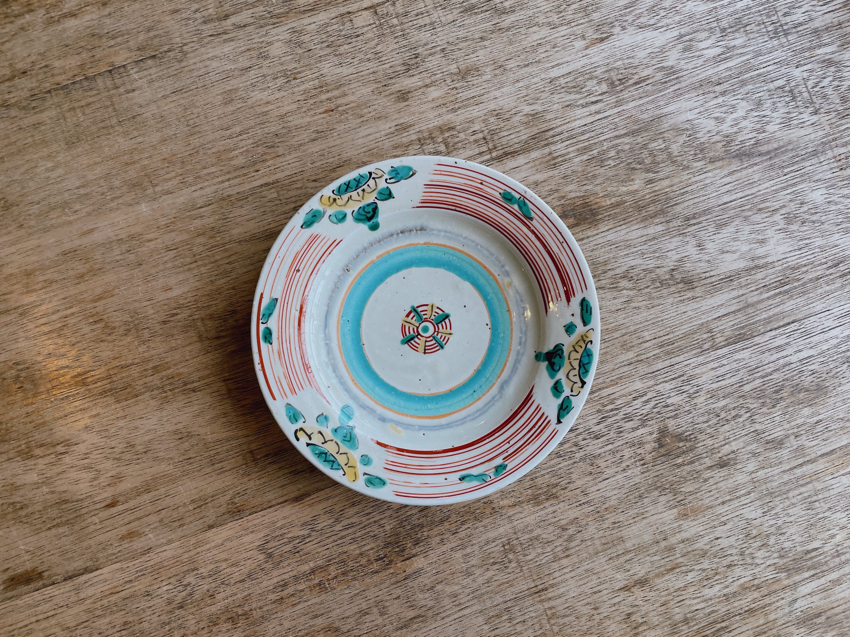砥部焼/中田窯/5寸リム皿(灰釉加彩)1-7