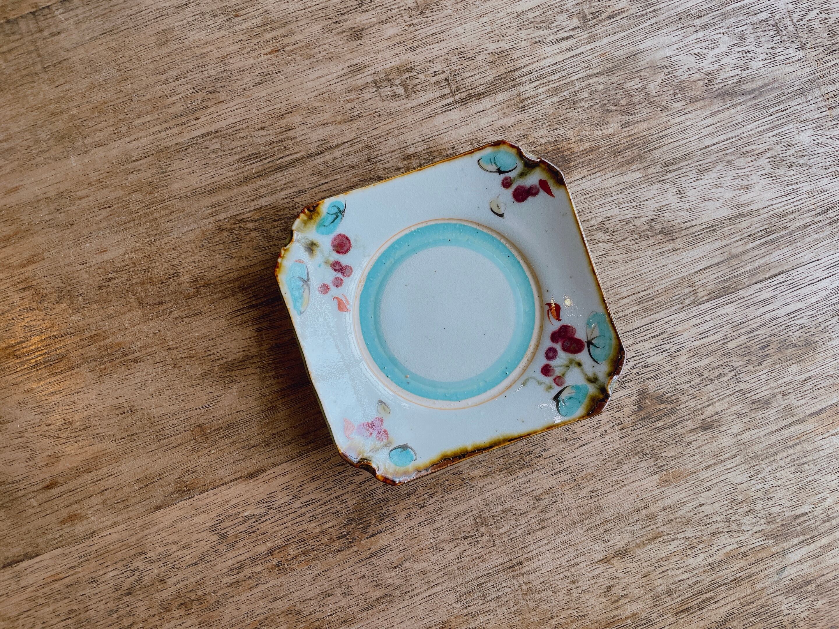 砥部焼/中田窯/5寸隅切皿(釉裏紅加彩/山帰来)⑤