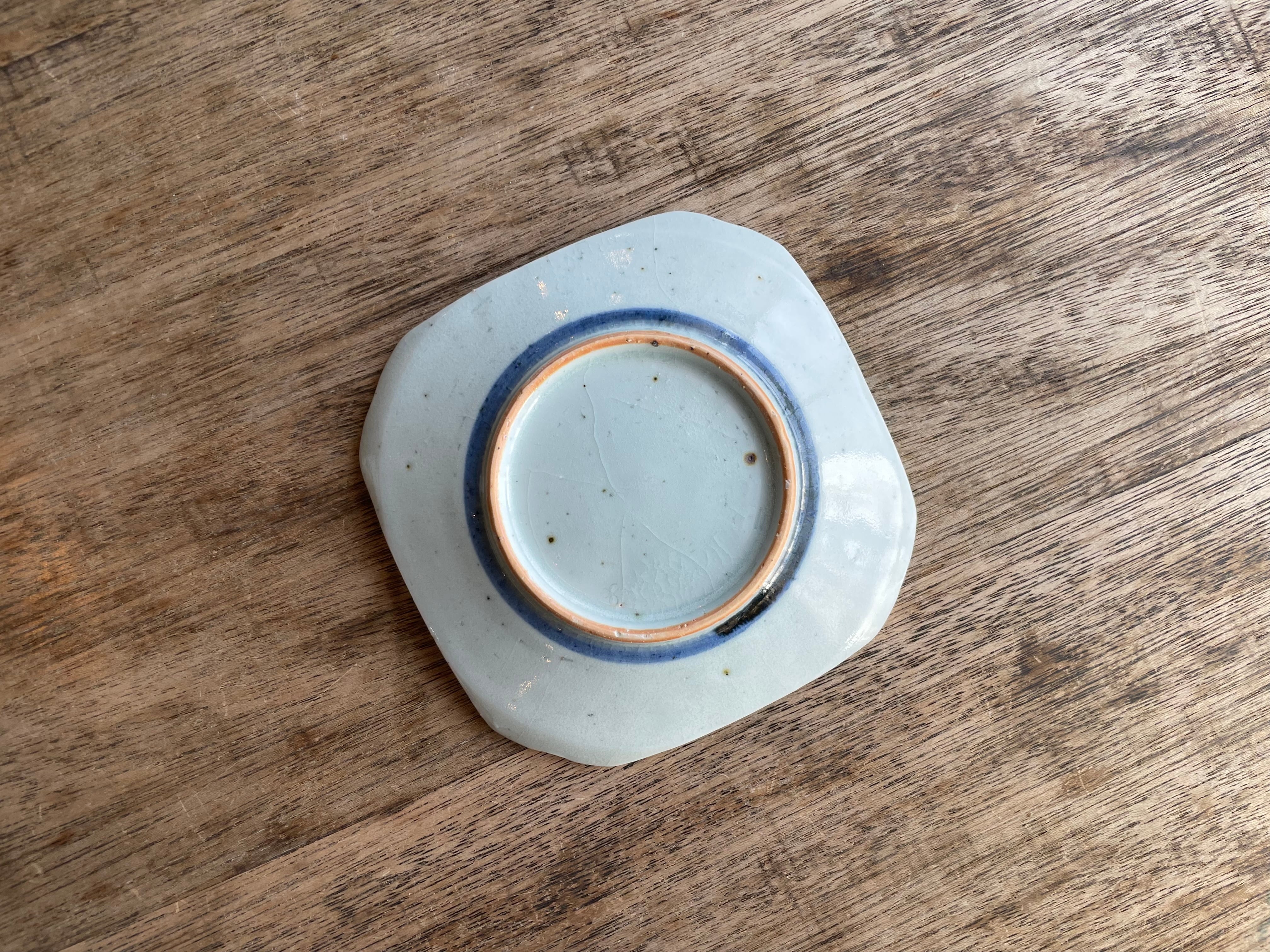 砥部焼/中田窯/5寸隅切皿(釉裏紅加彩/椿)①
