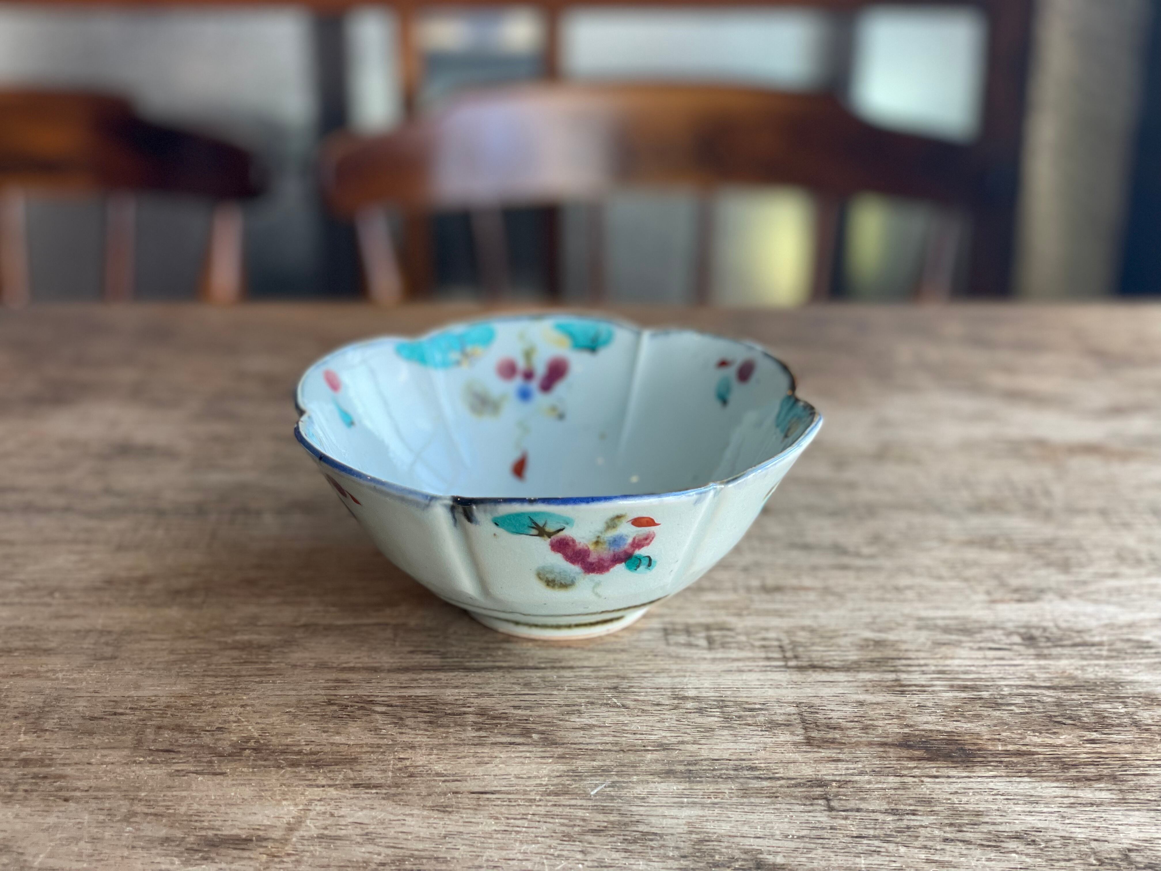 砥部焼/中田窯/5寸型打深鉢(釉裏紅/山帰来)②