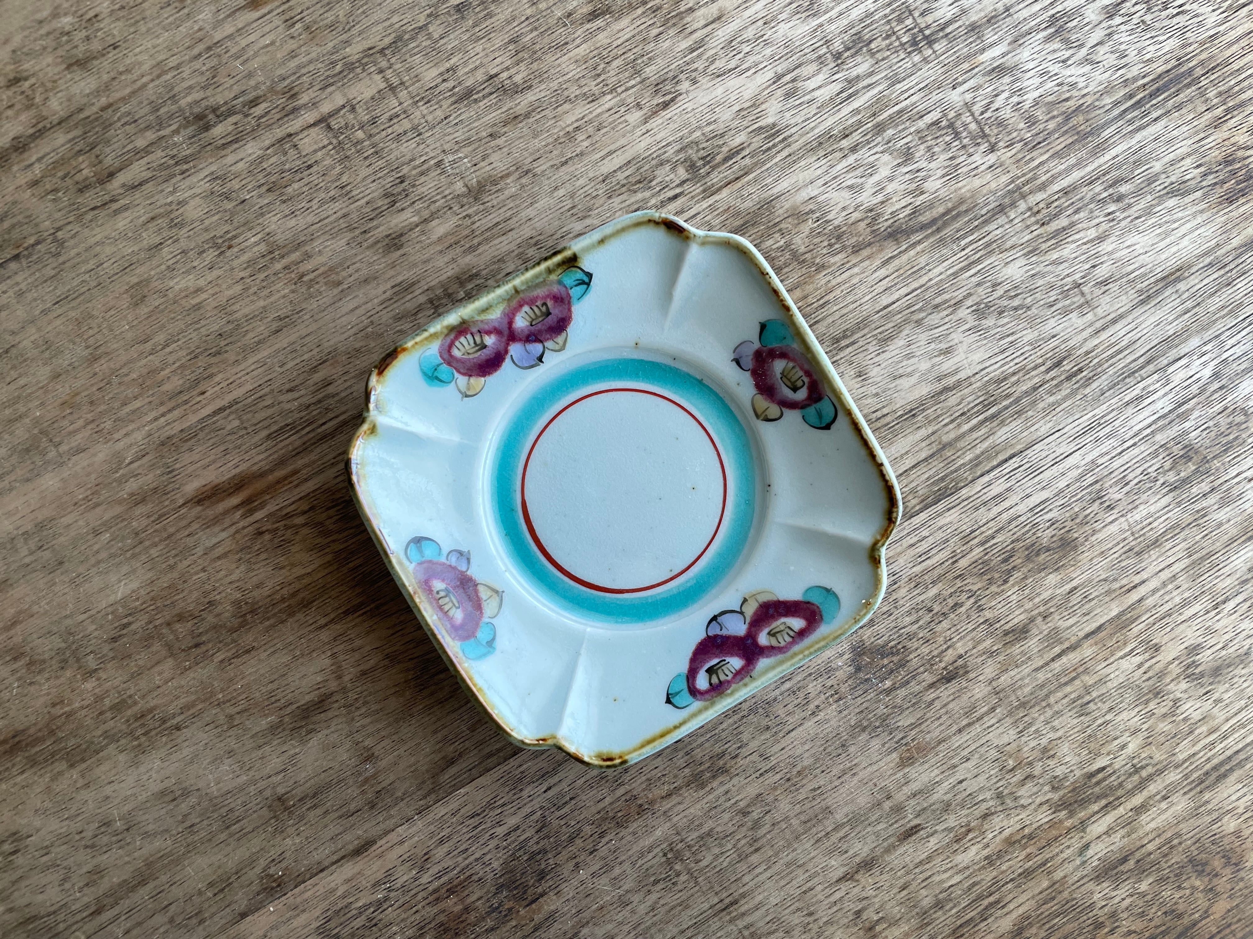 砥部焼/中田窯/6寸隅切皿(釉裏紅/椿)①