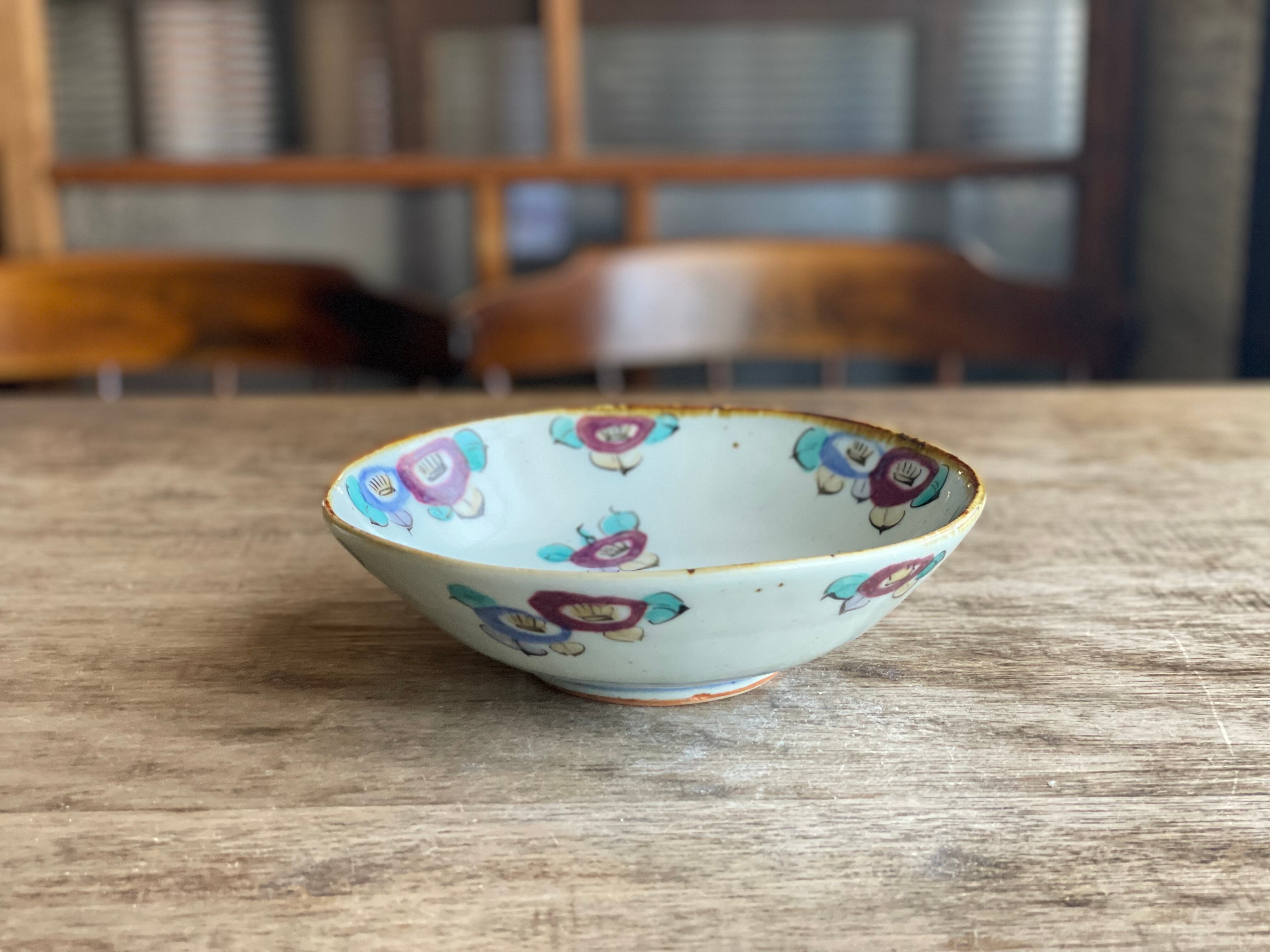 砥部焼/中田窯/6寸鉢(釉裏紅加彩/椿)