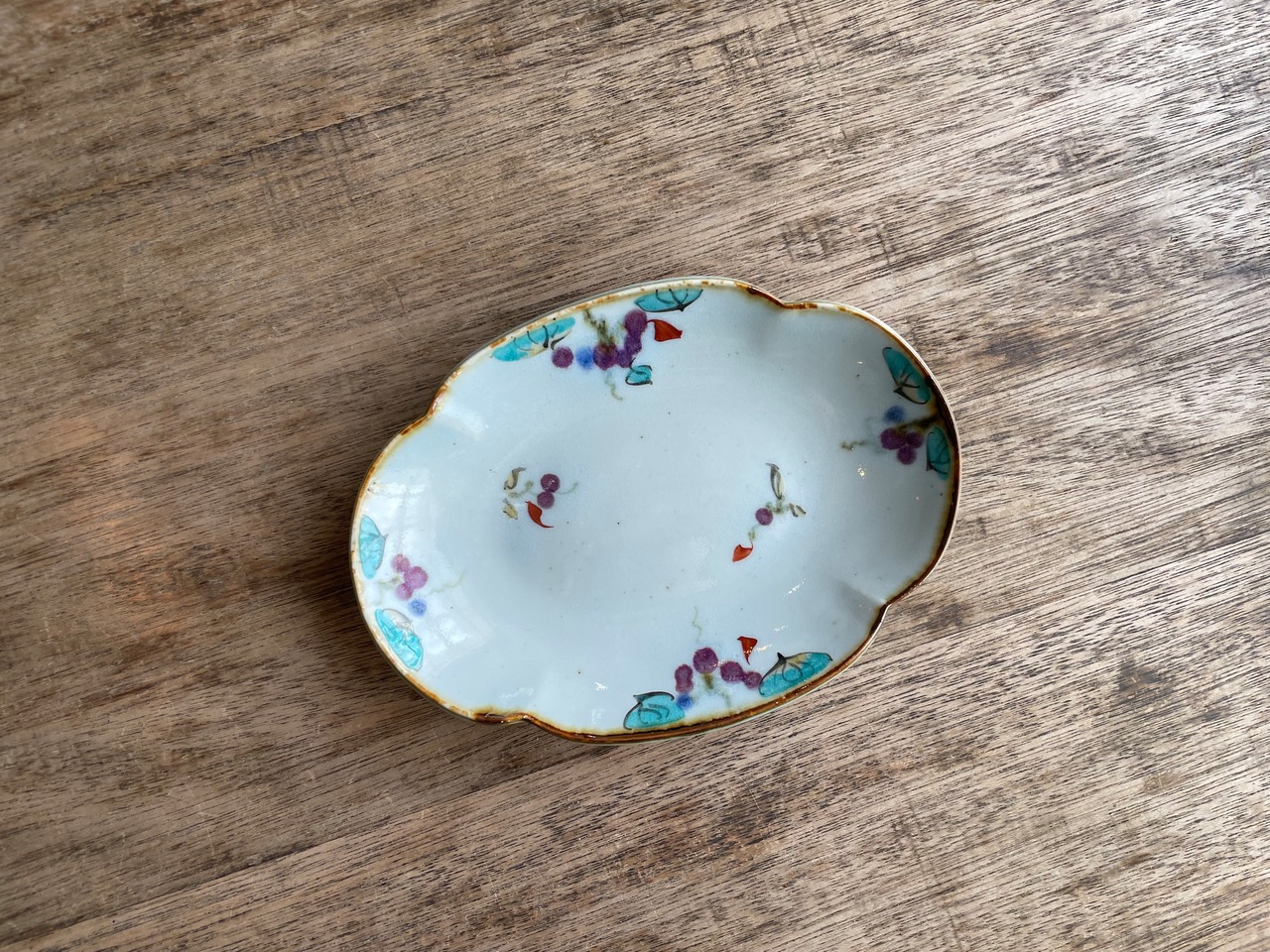 砥部焼/中田窯/6.5寸木瓜皿(釉裏紅/山帰来)②