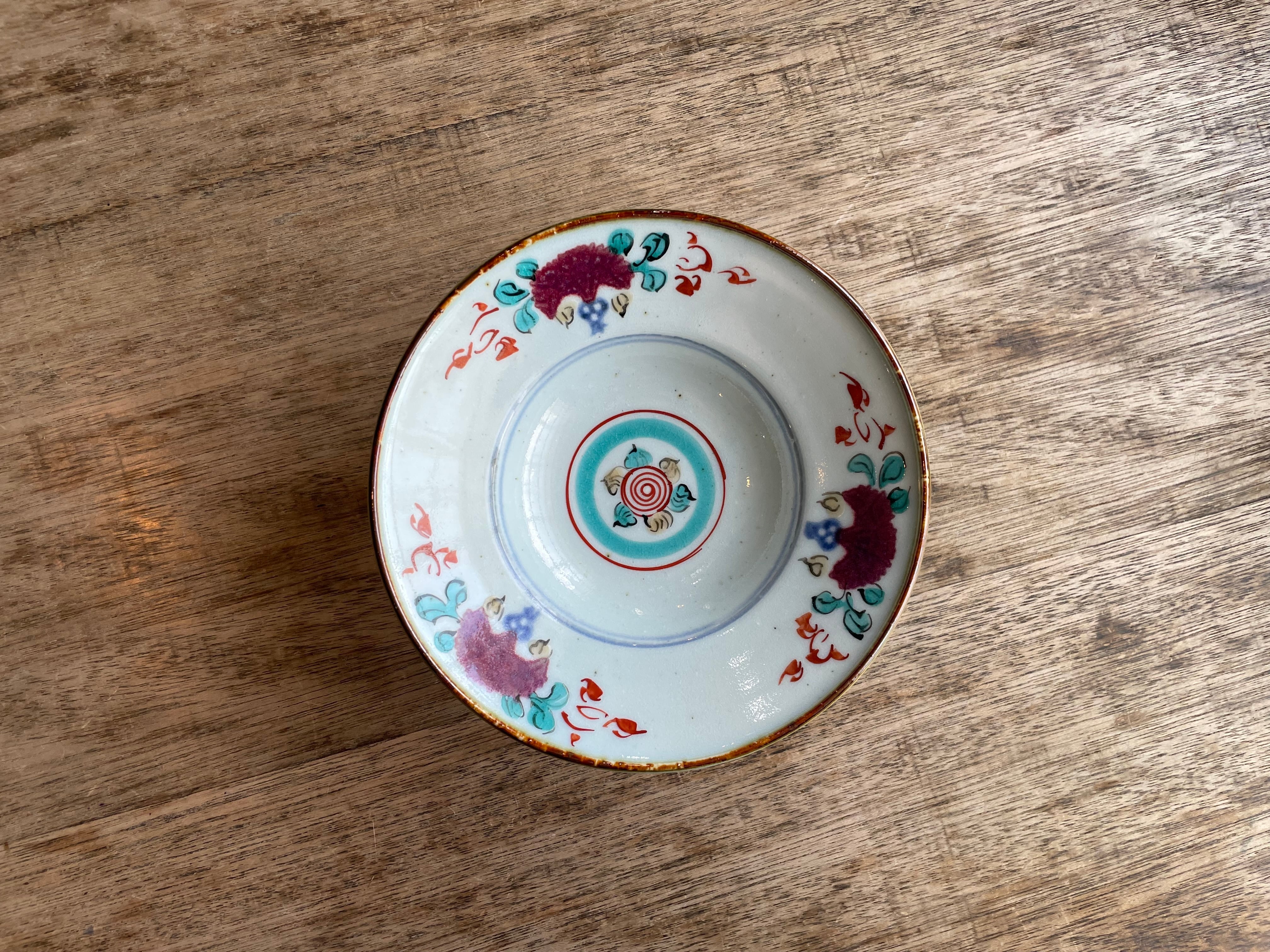 砥部焼/中田窯/6寸高台鉢(釉裏紅/鶏頭)