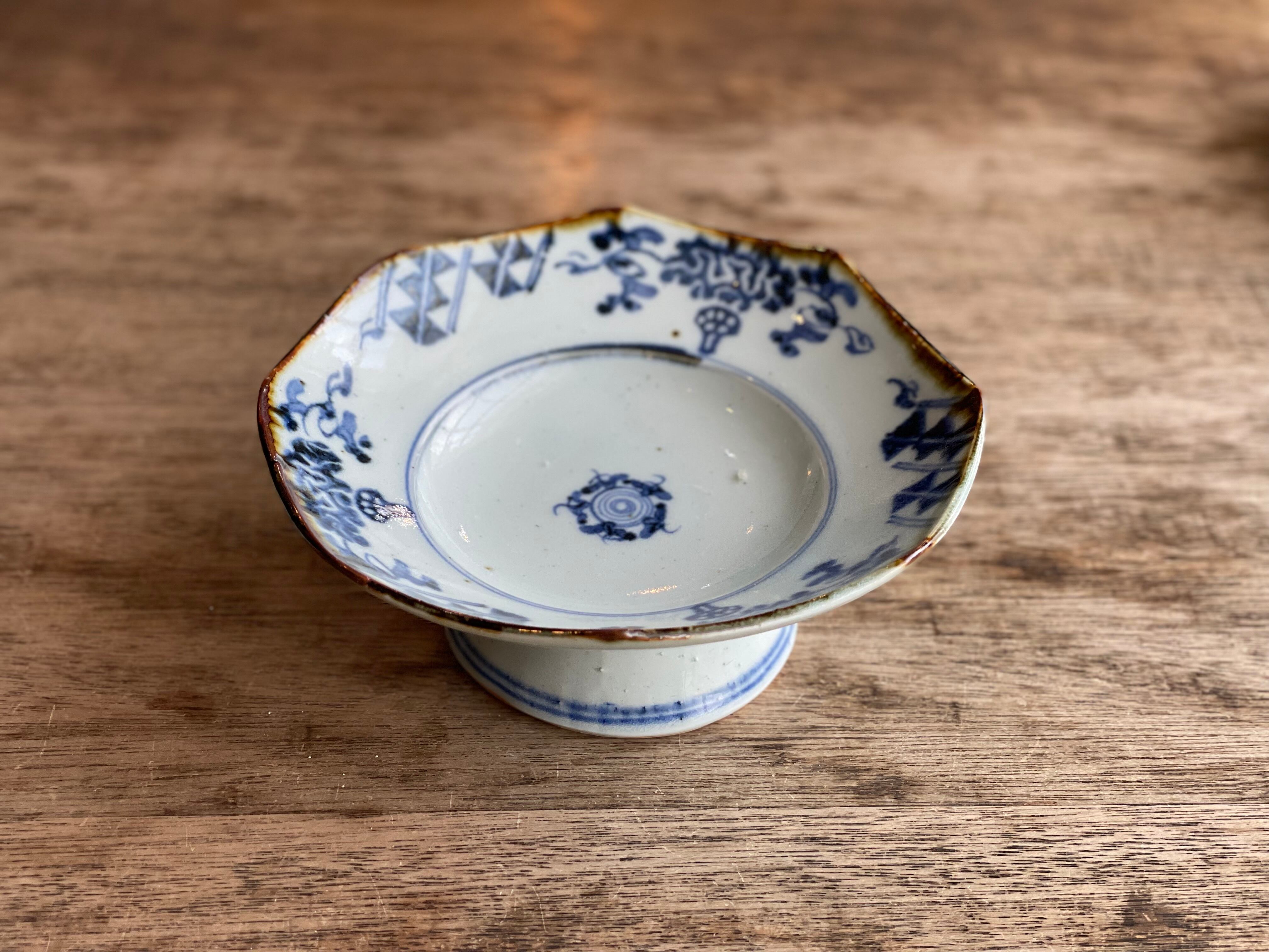 砥部焼/中田窯/6.5寸高台皿(呉須/鶏頭)