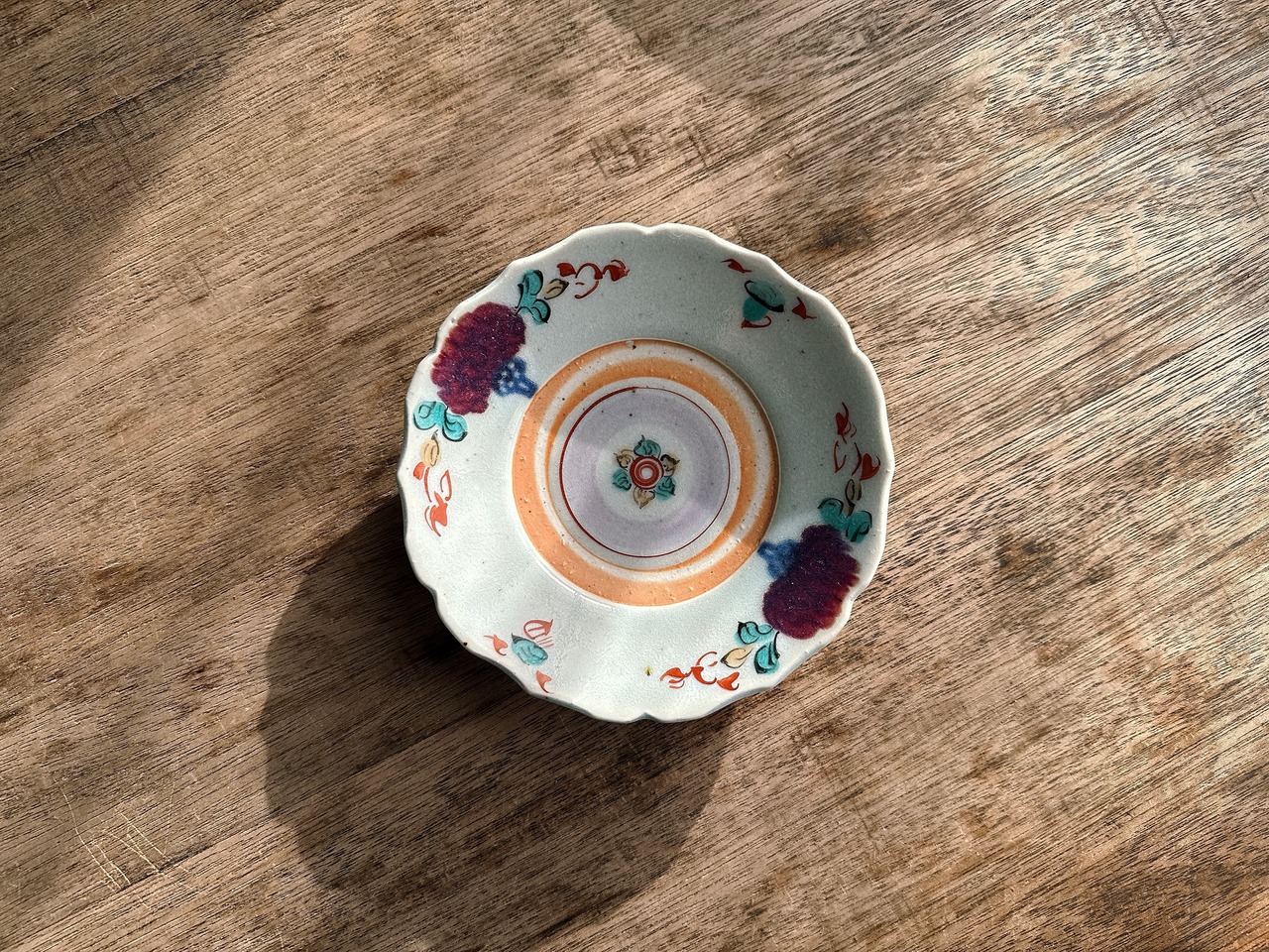 砥部焼/中田窯/5寸リム輪花皿(釉裏紅加彩)